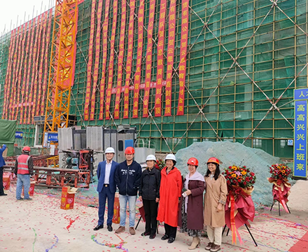 4月29日上午,集團公司董事長、總經理及公司各部門領導參加了中湖科教園封頂儀式。